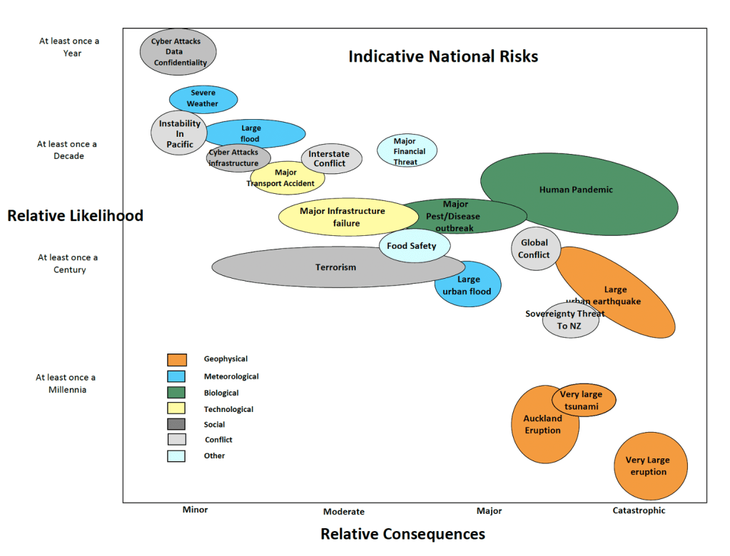 - Reframe the upcoming draft NZ National Security Strategy so that it focuses less explicitly on ‘malicious threats’ and more on ‘resilience and vulnerability’ to both catastrophic risks and more routine risks (eg, large storms).