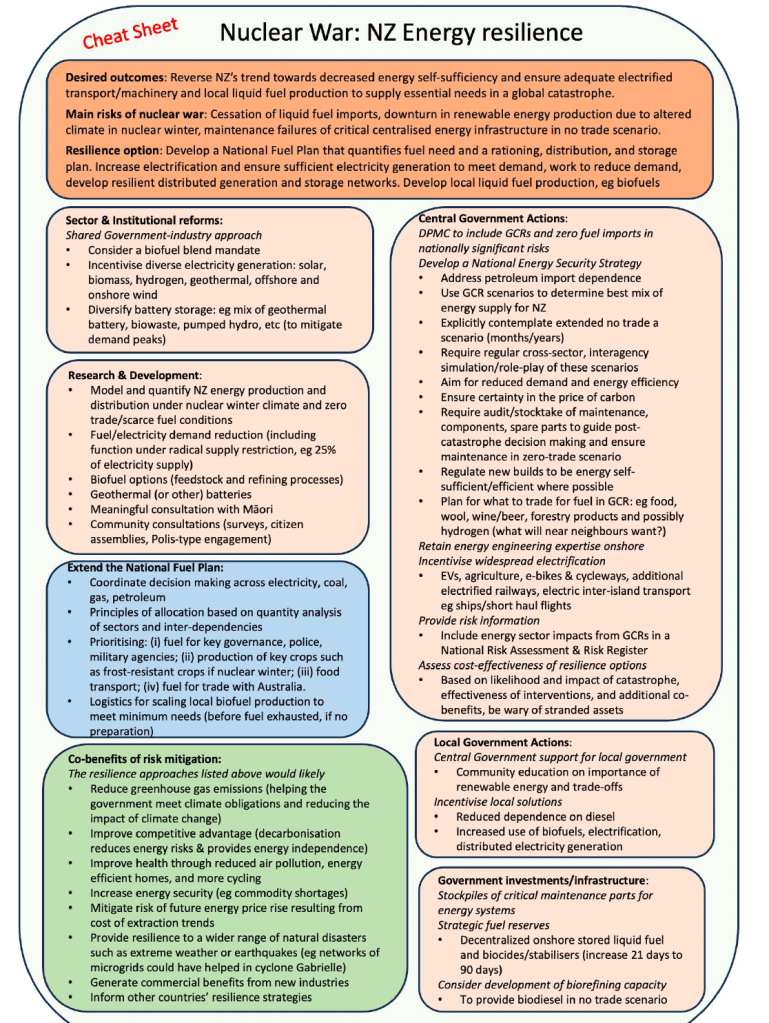 - Our NZCat Project (2023) found NZ’s greatest energy risks come from global disruptions, like nuclear conflict or trade isolation, not just domestic generation variability.