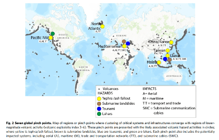 Global effects of such eruptions are listed, including crop failures, famine, trade disruption and impacts on infrastructure and supply chains, which could be ‘severe’ and felt worldwide.
