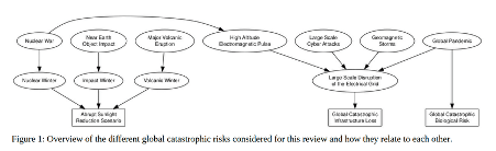 Global catastrophes will tend to have their consequences through common pathways, and it is in these pathways (as well as across key sectors) where resilience must be developed. The Figure illustrates three of these, namely ‘sunlight reduction’ (crop yields, food security, global food trade disruption); ‘global catastrophic infrastructure loss’ (interruptions to global energy supply, national electricity, or liquid fuel availability), and ‘global catastrophic biological risk’ (ie disease/pandemic disruption):